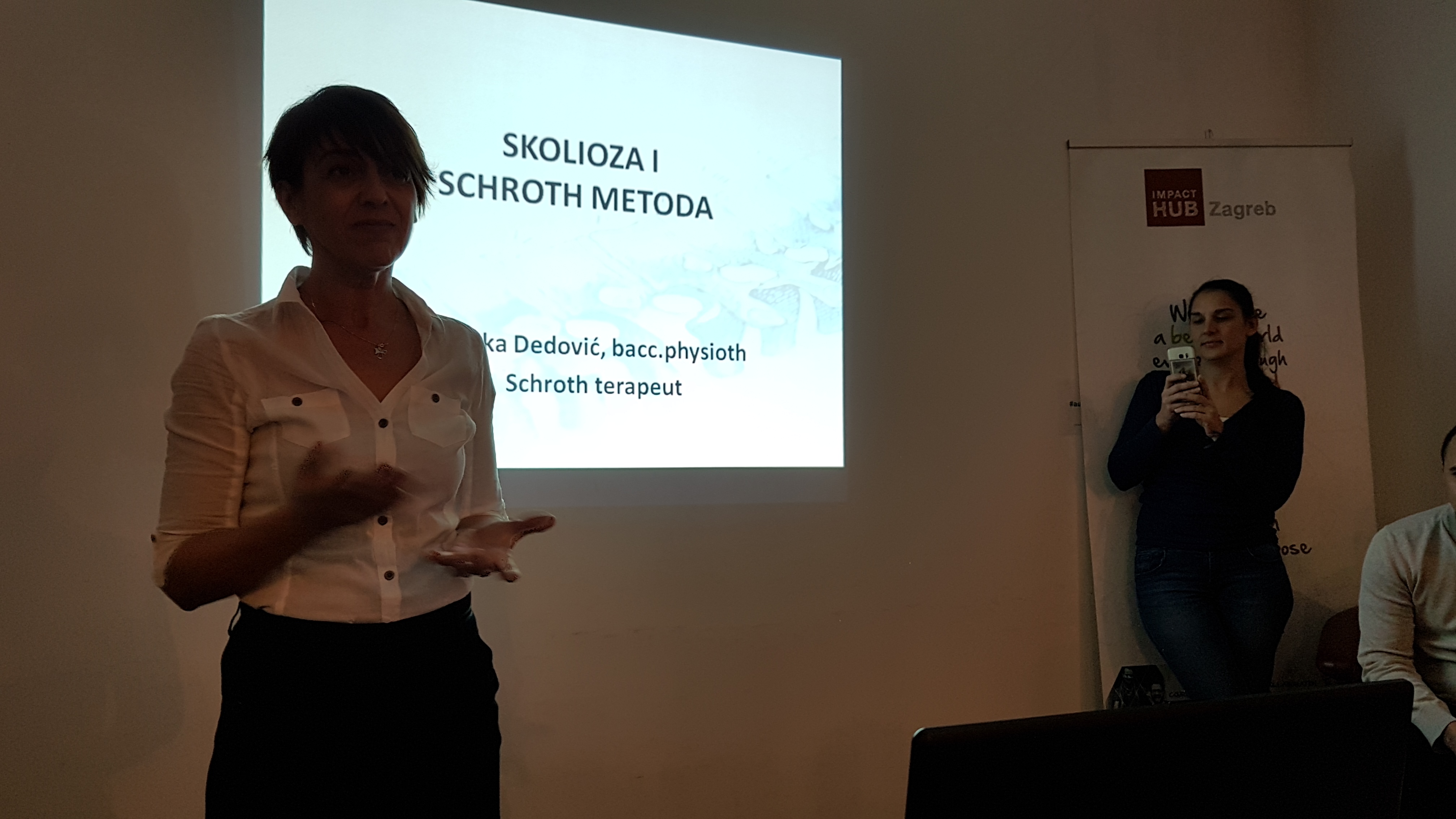 Jučer je Udruga Scolio point održala predavanje o skoliozi i Schroth metodi u prostorijama Imact huba u Zagrebu. Gost predavač bio je Mr.cin. Nikola Jevtić iz Novog Sada, regionalni Schroth instruktor i ovim putem se zahvaljujemo na sudjelovanju. U jutarnjim satima Udruga Scolio point bila je gost emisije Dobro jutro Hrvatska pa se ovim putem zahvaljujemo HRT-u što su na ovakav način podržali rad Udruge kojoj je jedan od osnovnih zadataka podizanje svijesti o skoliozi i edukacija roditelja djece koja imaju skoliozu, kao i mladih sa ovim zdravstvenim problemom. Zahvaljujemo se svima koji su sinoć došli poslušati nešto više o skoliozi i Schroth metodi. Sa ovim fotografijama dijelimo sa vama djelić sinoćnje atmosfere sa predavanja.